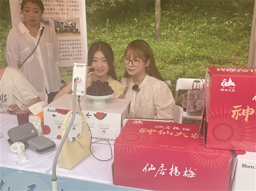 仙居杨梅节现场,主播在卖杨梅。